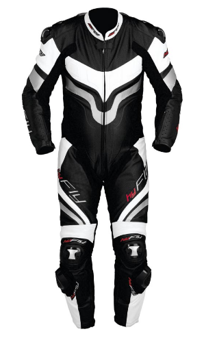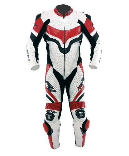 Tuta da moto in pelle colore Bianco-rosso/nero